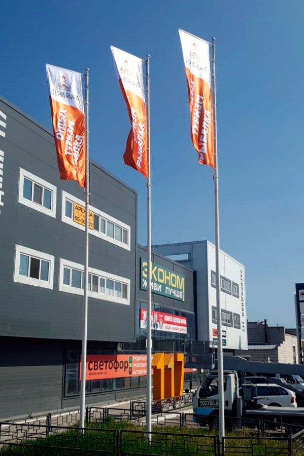 Флаги на мачтах флагштоках - отличное решение для оформления территории торгового, офисного, выставочного или спортивного центра