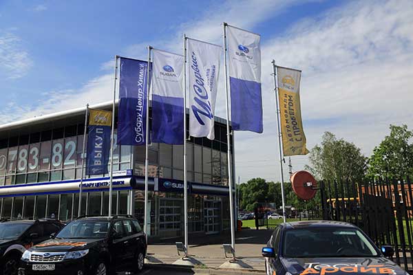Флаги с логотипом фирмы на мачтах флагштоках - запоминающаяся реклама для компании