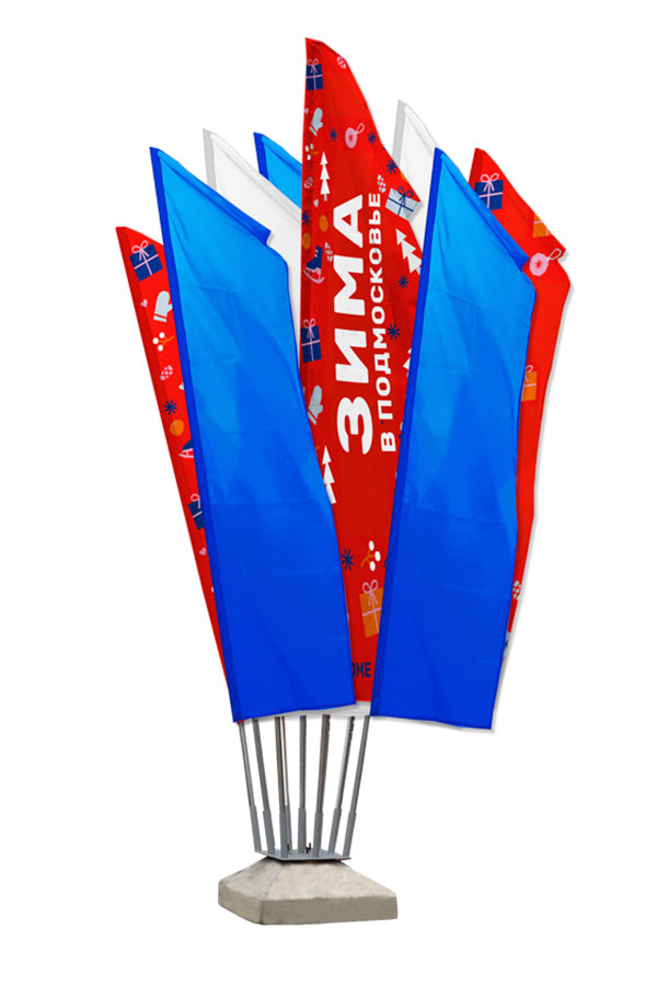 Флаги с праздничной символикой для крепления на перила моста,столбы освещения и на декоративные конструкции.
