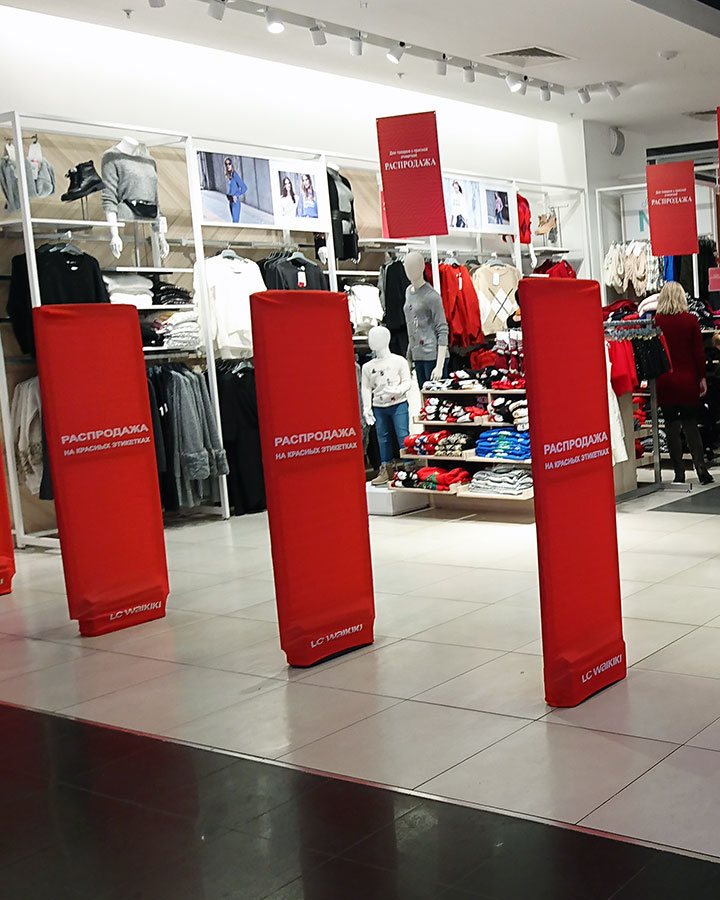 - можно быстро сменить - чехлы из ткани можно быстро менять в зависимости от потребности отдела маркетинга, например, при смены рекламной акции в торговой точке.