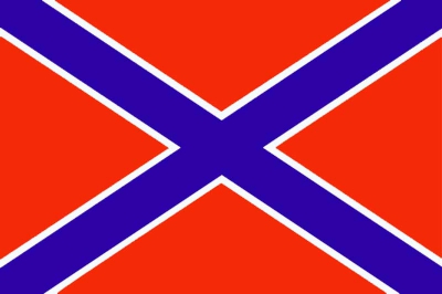 Флаг Новороссии представляет собой прямоугольное полотнище красного цвета, перекрещенный по диагонали синими линиями, обрамленными линиями белого цвета.
