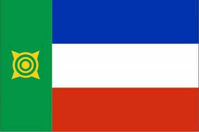 Флаг Хакасии представляет собой прямоугольное полотнище, состоящее из четырёх полос. Три равновеликие полосы расположены горизонтально в последовательности: верхняя — синего, средняя — белого и нижняя — красного цвета. Четвёртая полоса, зелёного цвета, располагается вертикально у древка. В середине зелёной полосы изображён солярный знак (символ Вселенной) золотистого цвета. Ширина каждой из горизонтальных полос составляет одну треть ширины флага. Отношение ширины флага к его длине 1:2.