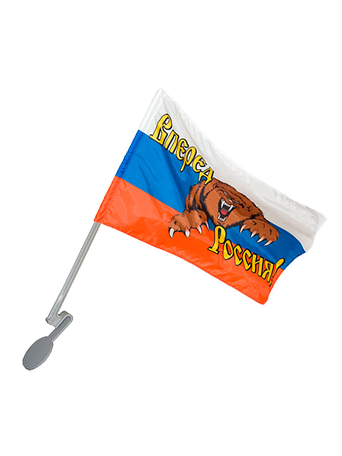 Флаг Вперед Россия с флагштоком на автомобиль (флаг РФ с кронштейном на автомобиль) предназначен для крепления флага на приоткрытое стекло автомобиля. Флаг для автомобиля, размером 24х36см, изготавливается из полиэфирного шелка (Т101). Автомобильный флагшток (кронштейн автомобильный для флагов) изготавливается из прочного пластика. Легко устанавливается и снимается, для установки не требуется специальных приспособлений.