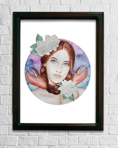 Панно «Рак» из серии «Знаки Зодиака» в деревянной раме (автор Мария Пирогова). Изображение нанесено методом сублимационной печати на ткани.